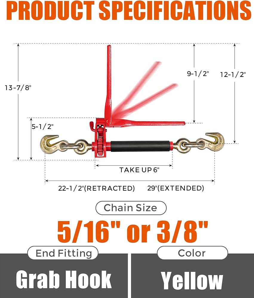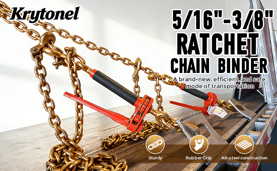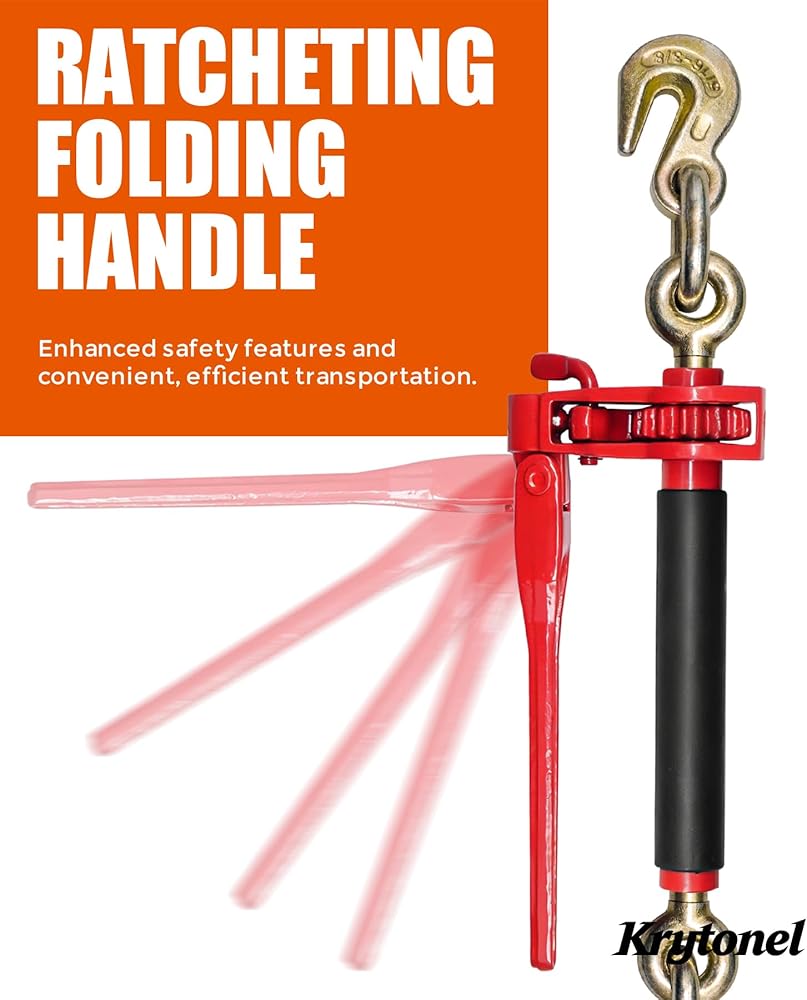 Heavy-Duty Construction with Corrosion Resistance:Heat-treated Grade 70 chains and hooks are built for demanding outdoor conditions. Gold zinc-dichromate plating helps resist corrosion. Folding handle ratchet binders feature an adjustable pawl for secure tensioning, release, and transport stability
