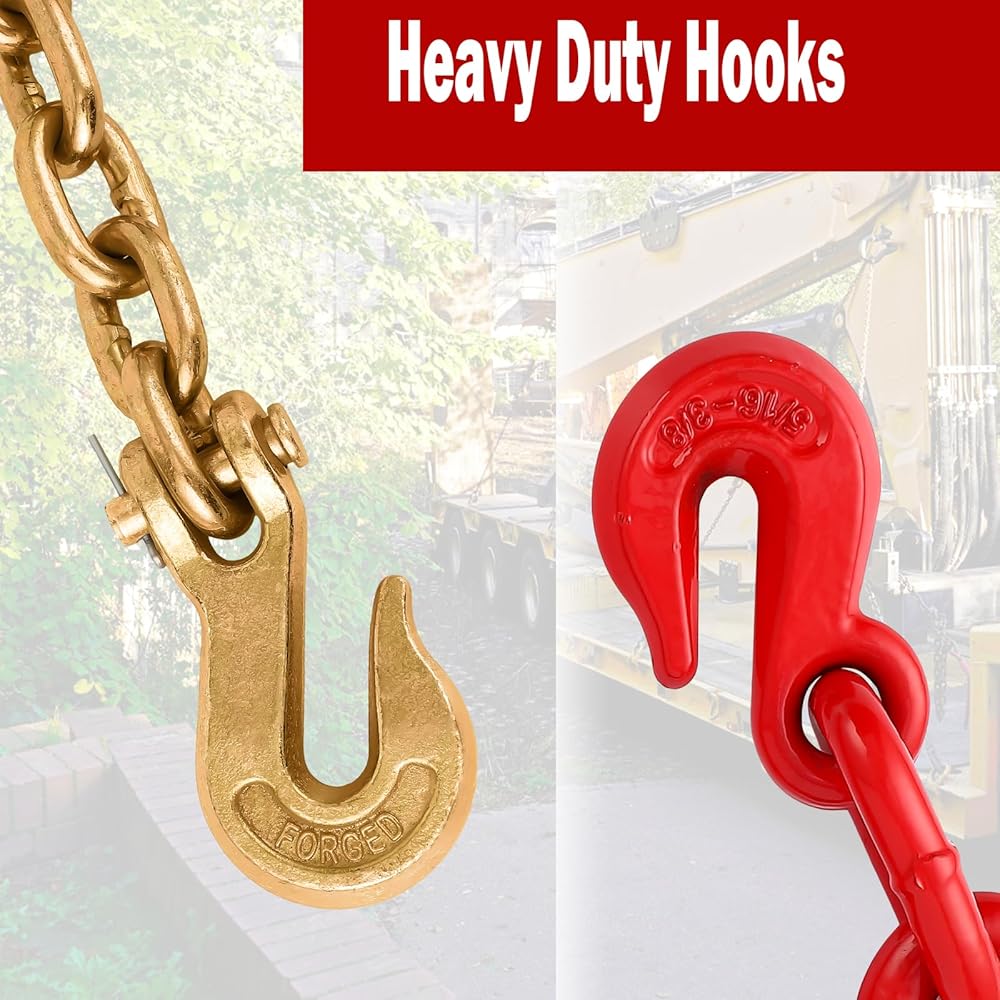【4:1 Safety Factor】High-quality standard chains are strength-tested for superior quality and are suitable for use in a variety of bad environments. Ratchet binder tensioners have a 3:1 safety-to-strength ratio. chains have a 4:1 strength ratio. Tip: For safety reasons, this product is not suitable for overhead lifting.