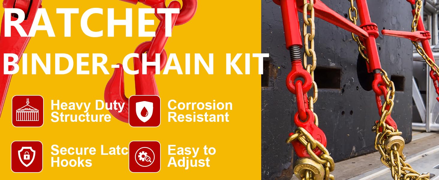 【Everything You Need in One Convenient Kit】: Stop piecing together your rigging gear. This complete set includes 2 heavy-duty ratchet binders and 2 ten-foot G70 chains with grabbing hooks. It's ready to work right out of the box, whether you're securing lumber on a job site or tying down equipment for transport across state lines.
