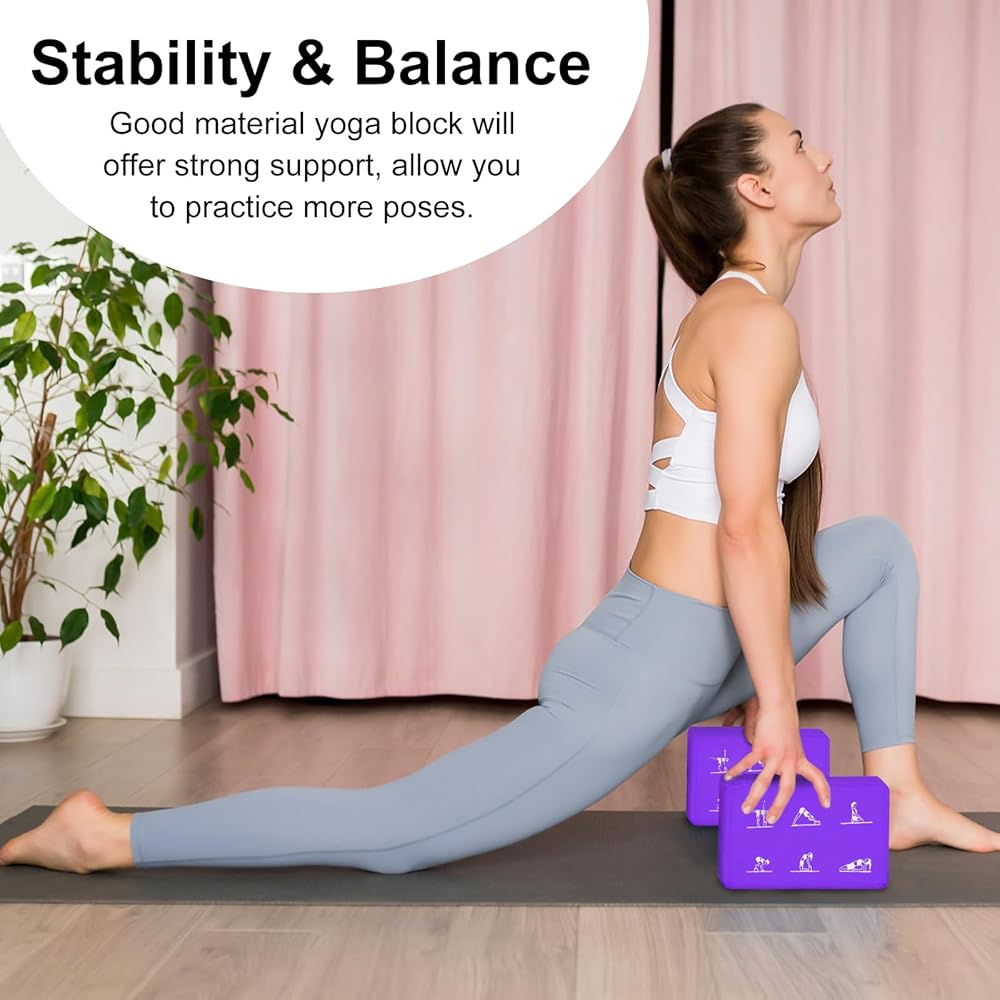 Latex-free yoga block kit features with 3D beveled edges and anti-slip surface, will offer strong support, allows you to maintain control and stability throughout your practice.
