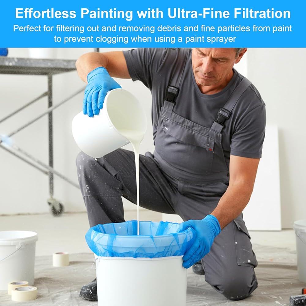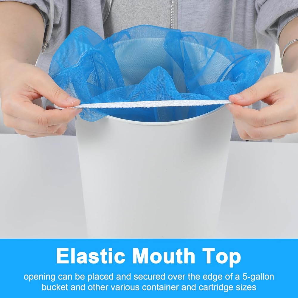 Upgrade your projects with our 24-pack of blue 5 gallon paint strainer bags. These essential paint strainers feature a fine nylon mesh for superior filtration and a secure elastic top. The perfect paint filter bag for ensuring smooth paint application, they also excel in gardening, brewing, and liquid straining. Durable and reusable, this set provides outstanding value as a reliable paint filter for all professionals and DIY enthusiasts.