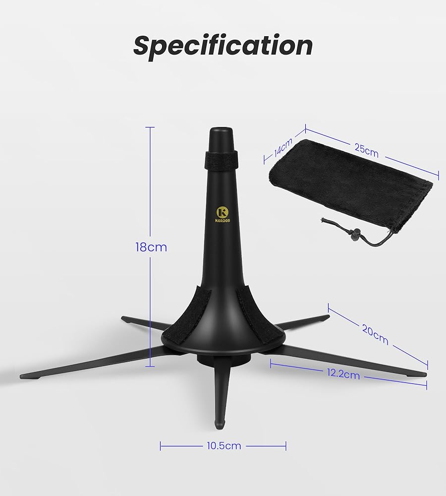KORDOS Trumpet Stand, Metal 5 Legs and Holder, Professional Grade for all Musicians, Lightweight & Compact, In-Bell Storeable, Stable Secure Folding Base & Detachable Legs, Black
