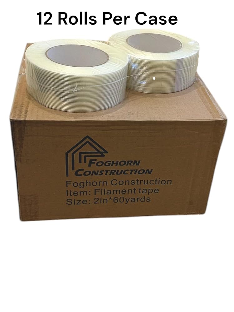 Discover the exceptional strength and versatility of this professional-grade filament tape. At 5.5 mil thickness, this clear reinforced packing tape delivers superior adhesion and holding power for your heaviest packing needs. Each roll measures 2 inches wide and 60 yards long, giving you plenty of tape for multiple projects. The transparent surface maintains a clean, professional look while the fiber reinforcement adds incredible strength. This heavy-duty tape adheres effectively to multiple surfaces including glass, wood, plastic, metal, fiberboard, and cardboard. Perfect for demanding applications like furniture maintenance, heavy-duty packing, carton sealing, and carpet fixing. The tape's weather-resistant properties make it suitable for both indoor and outdoor use, standing up to moisture and temperature variations. Easy to use and cut with scissors, this 12-roll pack provides reliable performance for your toughest industrial and commercial taping tasks.
