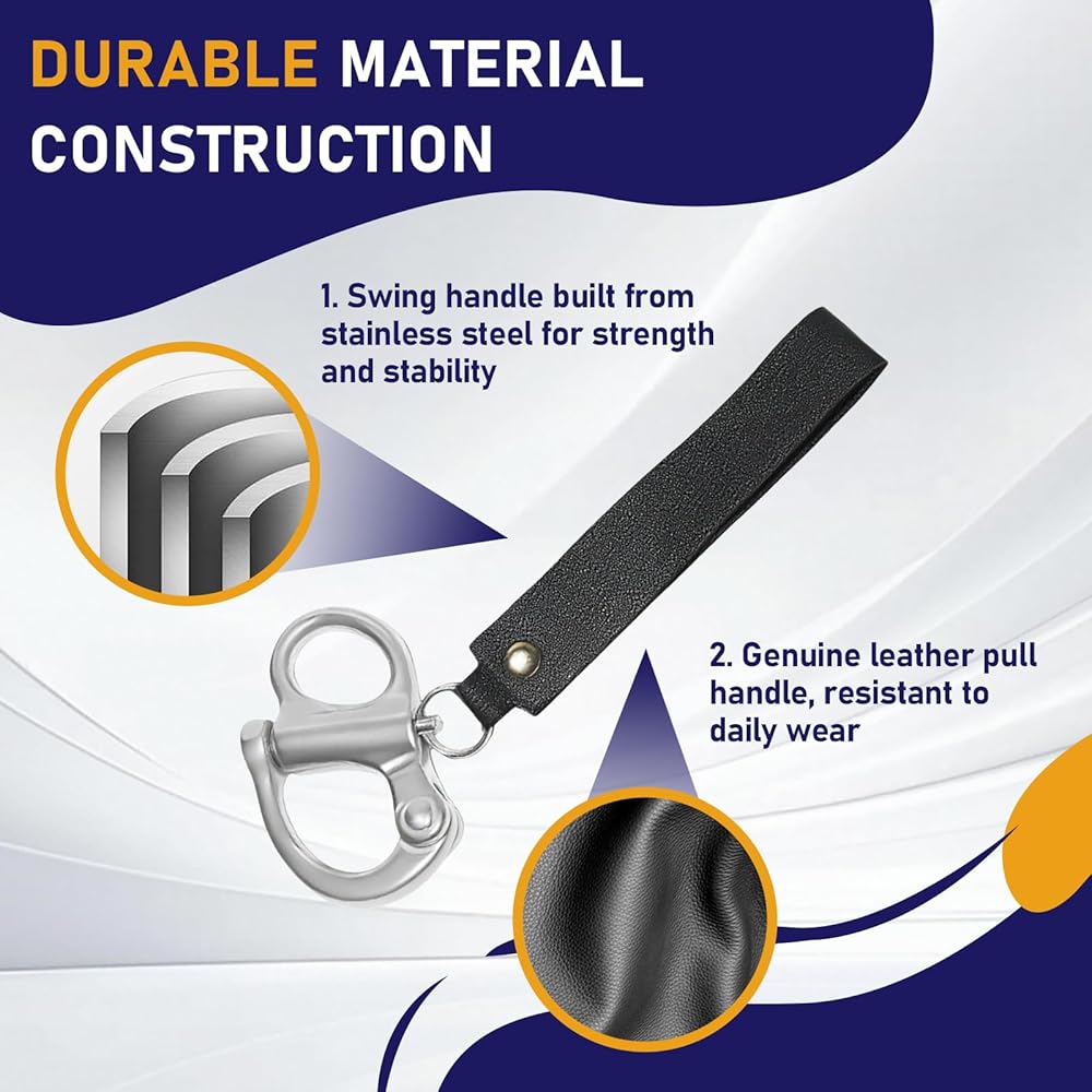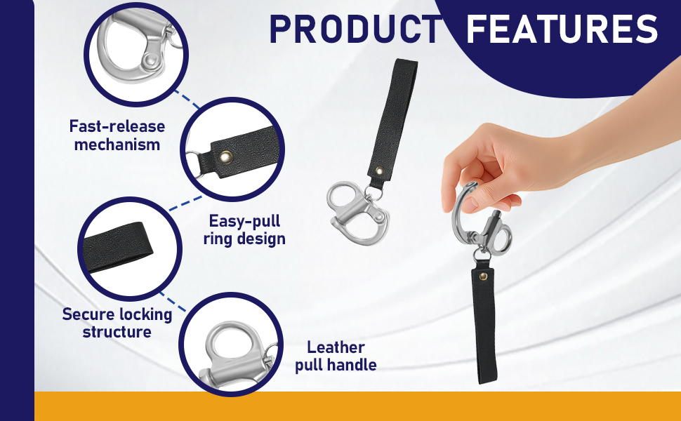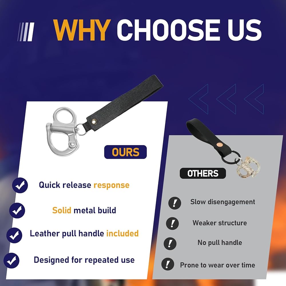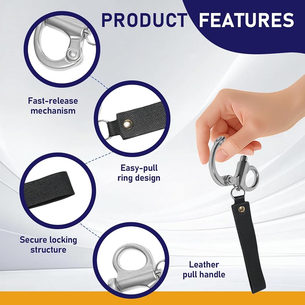 Multi-Purpose Configuration: The integrated leather handle enhances grip and usability, making these quick release clip components suitable for mask lanyards, gear organization, and general rigging needs.