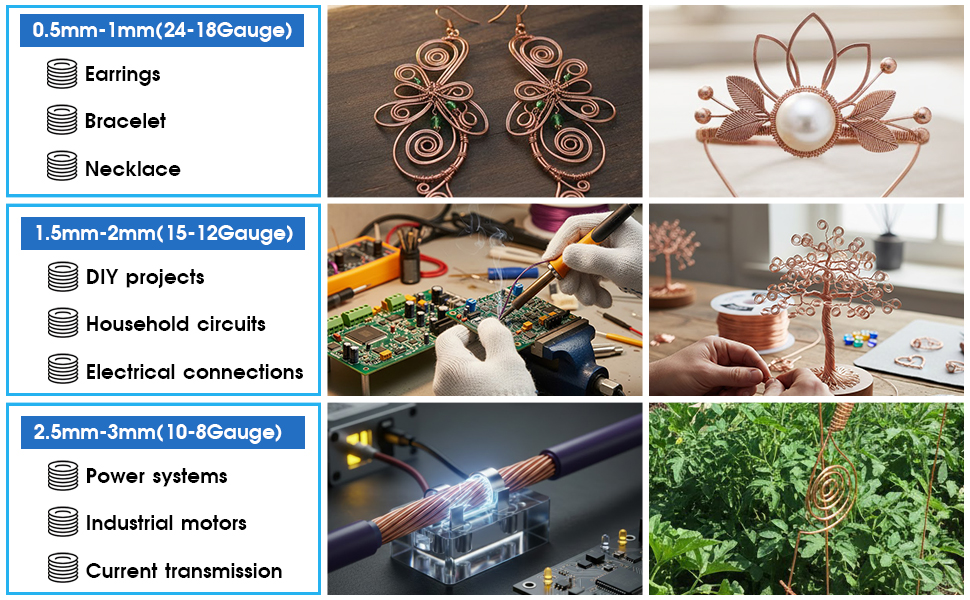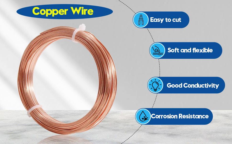 【Size】Copper wire length is 20FT / 6M, the diameter is 8 gauge / 3mm, a continuous copper wire and can be cut any length as you desire.
