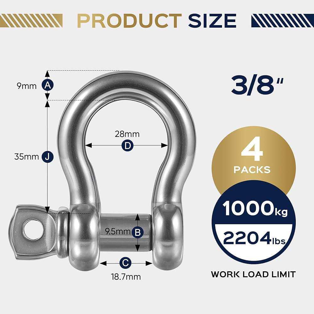 Safe, Stable, and Built for Long-Term Durability: Each shackle provides high tensile strength, strong deformation resistance, and a secure, anti-slip connection that prevents failures in extreme weather or high-load conditions. Precision-polished surface ensure smooth, safe handling.