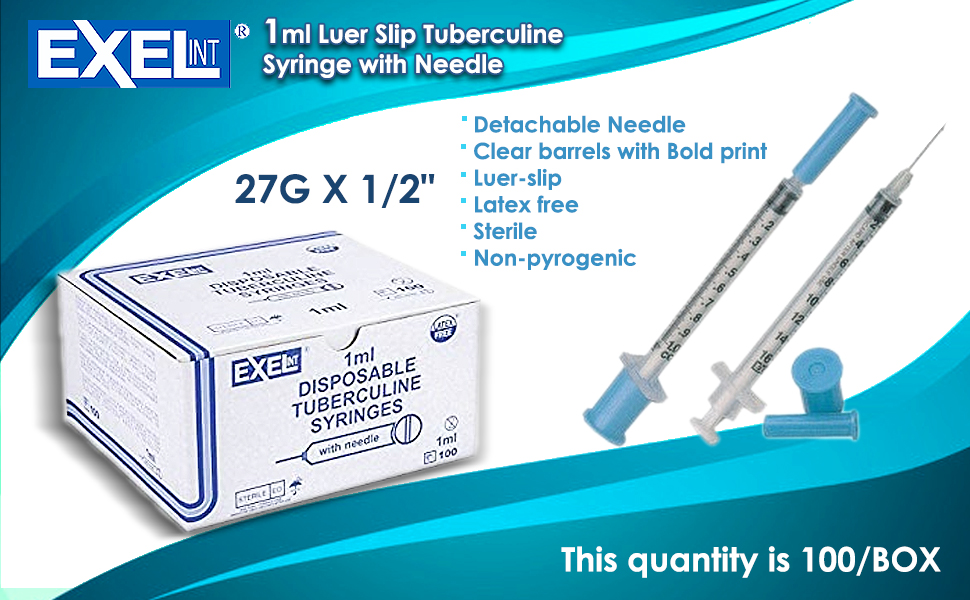 Exel 1mL Luer Slip Tuberculin Syringe with Needle, 27G X 1/2", 100/Box