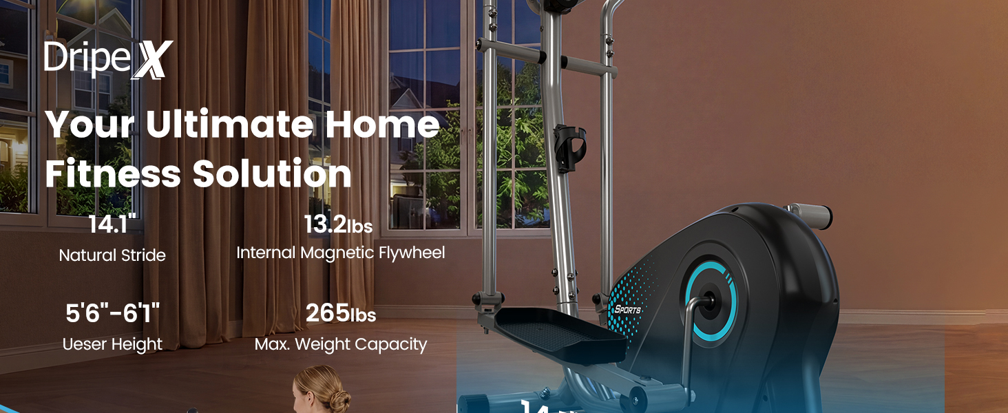 【Next-Gen Internal Magnetic System】The Dripex elliptical exercise machine features an integrated annular magnetic flywheel that outperforms traditional unilateral external controls. Enjoy near‑silent motion (<20 dB), exceptionally smooth rotation, and perfectly even resistance—work out anytime without disturbing others