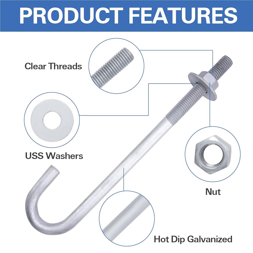 1/2" x 12" J Bolt Anchors (25 Pack) for Concrete with Nuts and Washers, Hot-Dip Galvanized