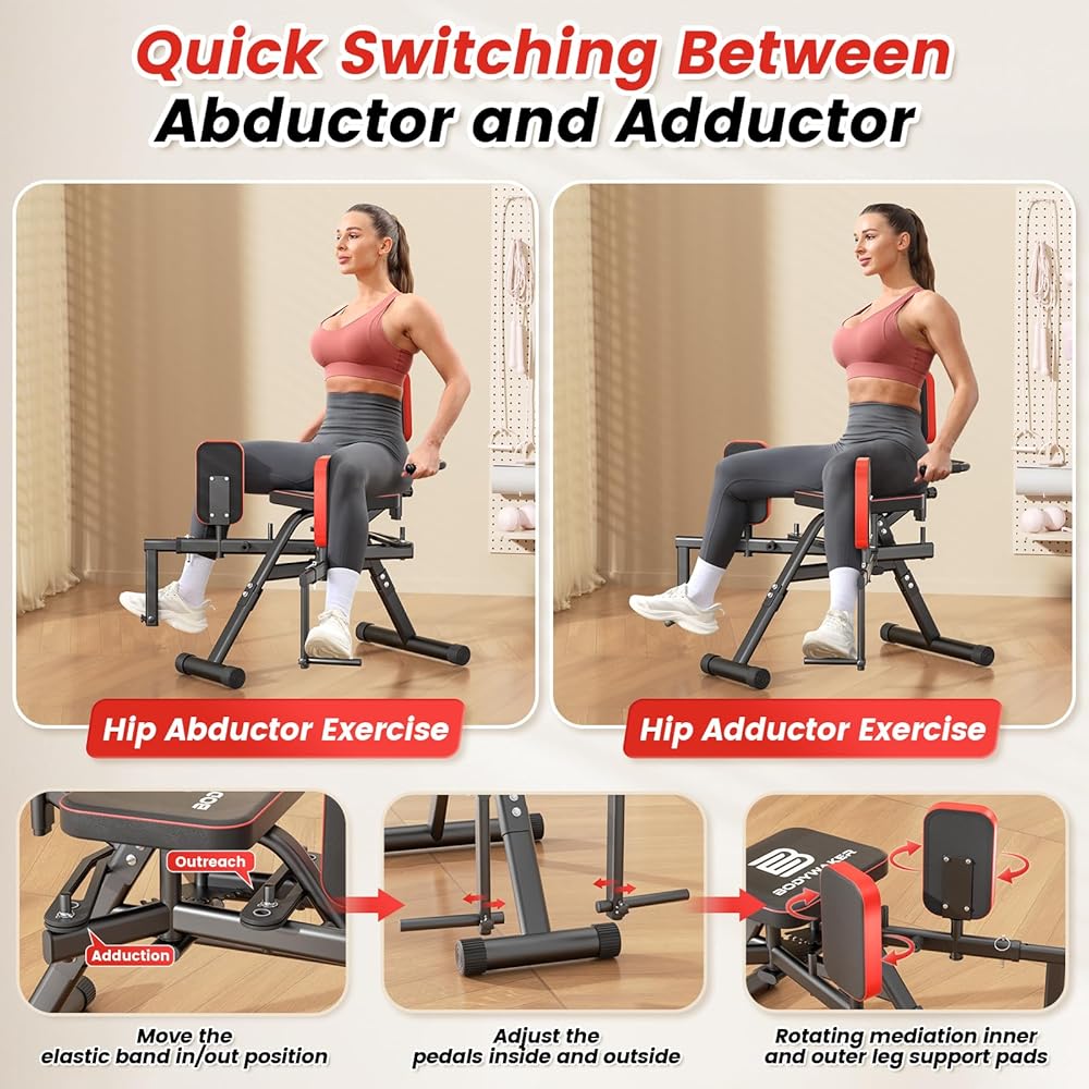 Hip Abduction Machine, Inner and Outer Thigh Machine for Home Gym, Abductor Adductor Machine for Women, Compact Glute Workout Machine for Strength Training