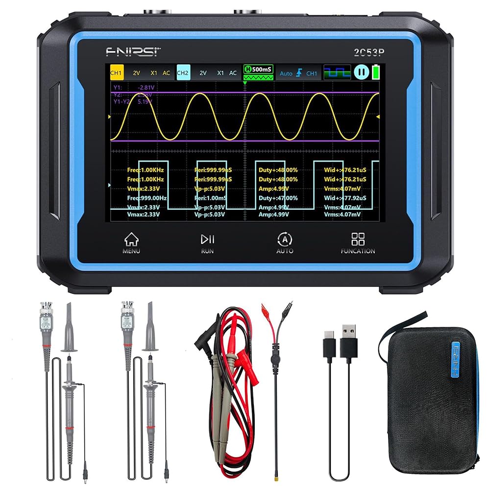 (FNIRSI 2C53P) 3 in 1 Oscilloscope/Multimeter/DDS Signal Generator, Handheld Tablet Touchscreen Digital Automotive Oscilloscope Portable 2 Channel 50MHz, 250Ms/S, 19999 Counts