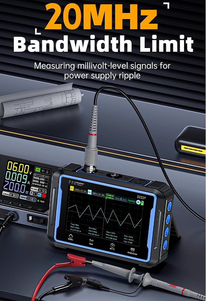 • High-Performance: FPGA+MCU+ADC design of oscilloscope multimeter tester ensures robust capture functionality and overheating protection; smart analysis capabilities including afterglow, FFT spectrum analysis, cursor measurement, and X-Y mode