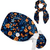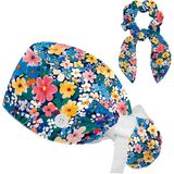 Scrub Cap, Surgical Caps for Women, Floral Flower Seamless Pattern, Bouffant Nurse Cap Ponytail in Kuwait