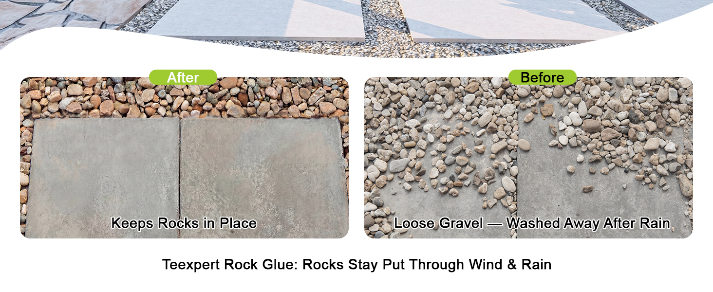 Keeps Gravel Neat & Yard Clean - Teexpert rock glue for landscaping locks pea gravel and small stones firmly in place, making leaves easy to blow away and preventing rain from washing rocks loose. This rock glue for pea gravel keeps your yard clean and organized while reducing ongoing maintenance and replacement costs.