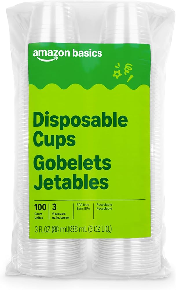 Amazon Basics Mini Disposable Clear Plastic Cups, 3oz, 100 Count