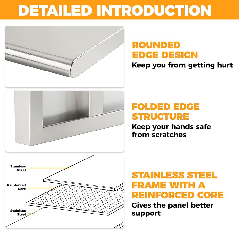 Reinforced Stability for Heavy-Duty Use:Engineered for reliability, the shelf features two robust crossbars and triangular-support brackets beneath the surface. This intelligent heavy-duty structure provides exceptional load-bearing capacity and prevents wobbling, ensuring your equipment and supplies remain stable and secure during busy operations