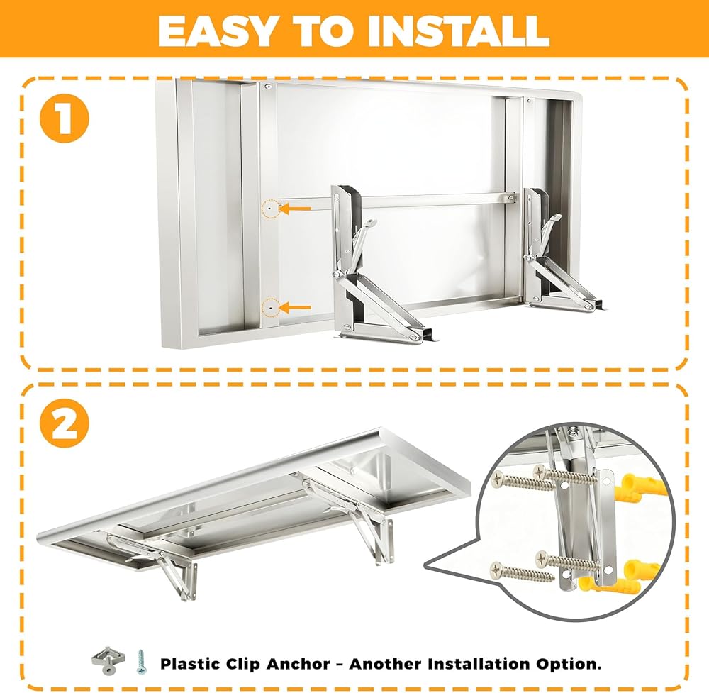 Versatile for Countless Commercial & Home Uses:This is the ultimate space-saving solution for multiple environments. Securely mount it on the side of your food truck as a serving window, inside your concession trailer, on a kitchen wall, or even in a garage or bathroom for extra storage. Its utility shelf design makes it a versatile addition to any space that demands a reliable, fold-down surface