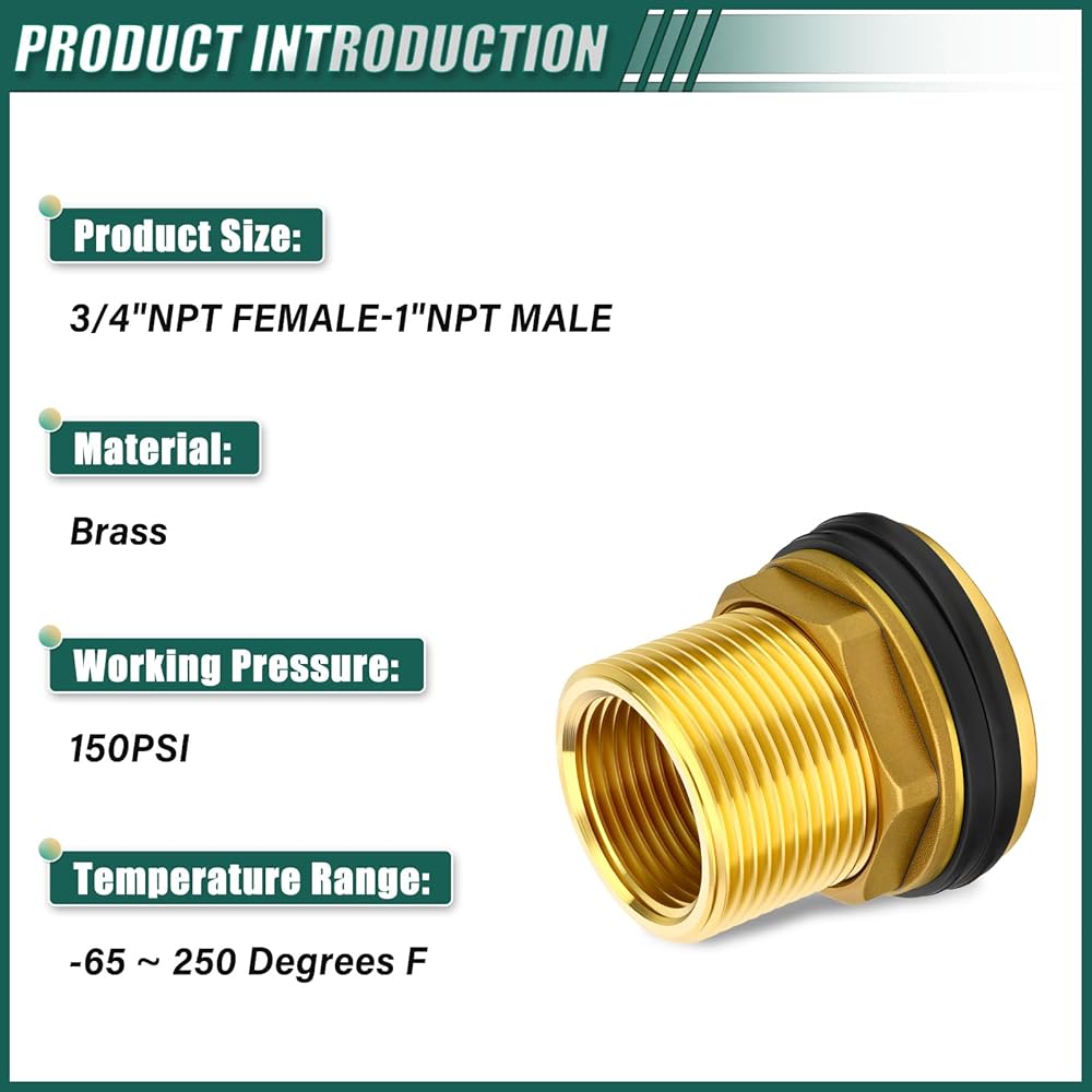 1PCS Brass Water Tank Connector, 1" NPT Female 1-1/4" NPT Male, Bulkhead Tank Adapter Fitting, with Rubber Ring, for Water Towers/Various Pipes/Fittings