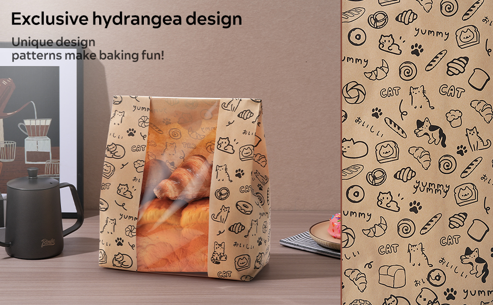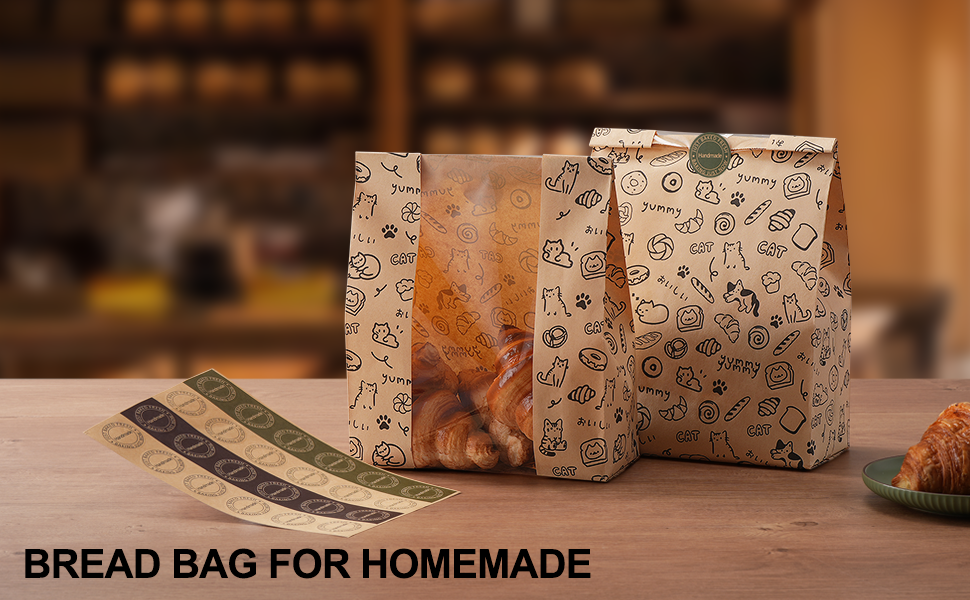 Gift-Ready with Bonus Labels & Charming Prints: Each set includes 24 adhesive stickers, perfect for sealing, branding, or customizing your bread packaging for homemade bread. The bags are adorned with adorable cats, Japanese text, and soft bakery-style icons—adding warmth and personality to every package.