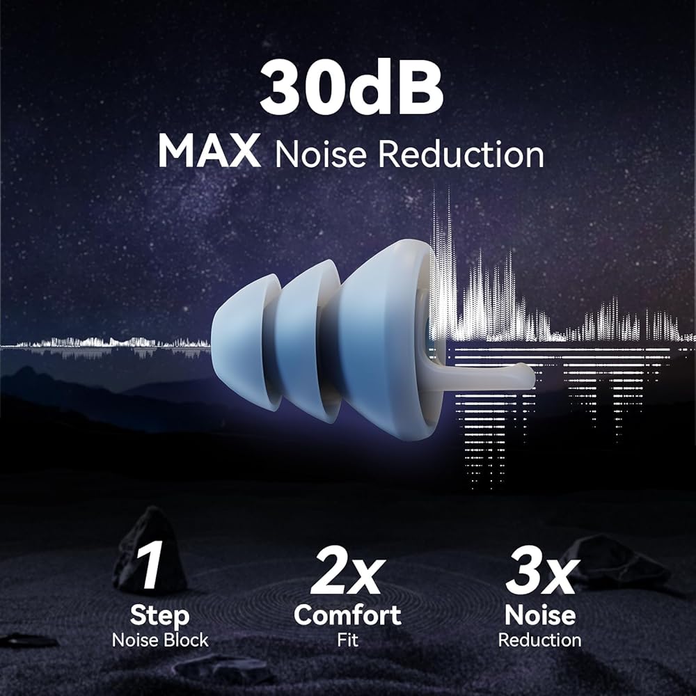 𝐒𝐧𝐨𝐫𝐢𝐧𝐠 𝐁𝐥𝐨𝐜𝐤𝐢𝐧𝐠 𝐓𝐞𝐜𝐡𝐧𝐨𝐥𝐨𝐠𝐲:This sleep ear plug uses a noise reduction gel core to absorb 35dB of energy for 20-250Hz low-frequency noise (such as snoring, air conditioning vibration), which can reduce the snoring of the pillow person to a whisper level, while maintaining 92% transmission of medium and high frequency sounds above 500Hz (such as sleep aid white noise), so that you can sleep better.