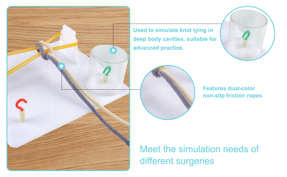 Features dual-color, non-slip friction ropes that closely mimic real suture texture while providing visual guidance for improved knot-tying practice.