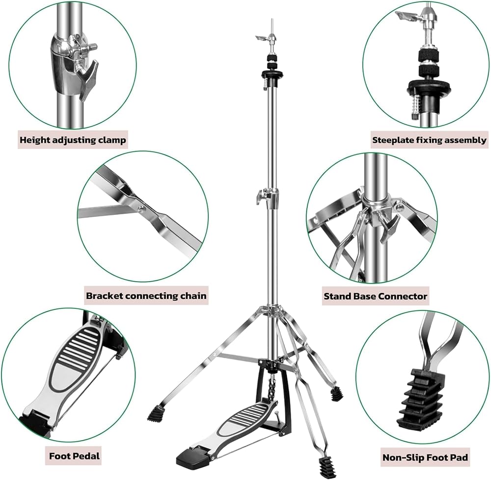 Elevate your drumming experience with this professional-grade hi-hat stand, designed to deliver reliable performance and stability for drummers of all skill levels. This sturdy stand features smooth height adjustment mechanisms and secure cymbal mounting, allowing you to position your hi-hats exactly where you need them. The robust construction ensures minimal wobble during intense playing sessions, while the adjustable spring tension lets you customize the pedal response to match your playing style. Whether you're practicing at home, recording in the studio, or performing live, this hi-hat stand provides the dependable foundation needed for precise cymbal control and articulation. The stand's thoughtful design incorporates non-slip rubber feet for enhanced stability on any surface, making it an essential component of your drum kit setup. Perfect for both beginners looking to upgrade their gear and seasoned professionals demanding consistent performance.
