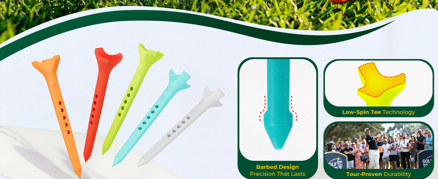 🔒 BARBED TIP – NO MORE FLYAWAYS:Upgraded barbed spike design grips the ground firmly, preventing tees from popping out or flying away after impact. Spend less time searching and more time playing.