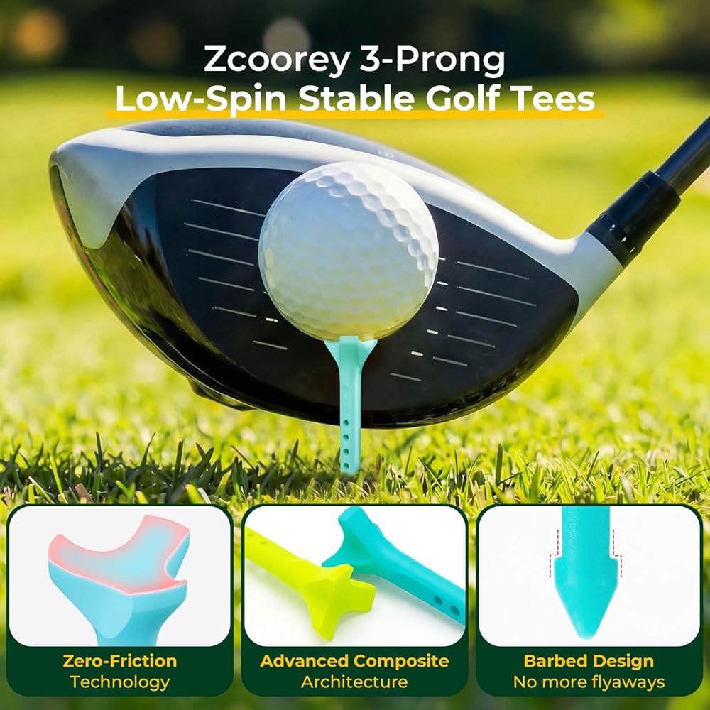 ⛳ LOW-SPIN & MAX DISTANCE PERFORMANCE:3-prong head design reduces ball-to-tee contact, minimizing friction and side spin for cleaner launch and longer drives. Optimize energy transfer for more consistent distance off the tee.