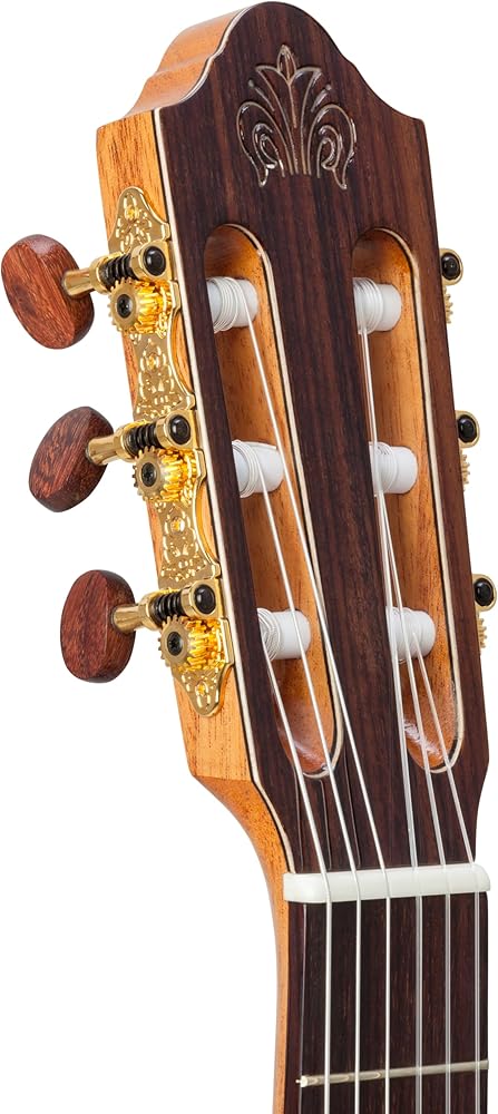 Fiesta FC is crafted of Indian rosewood, renowned for its wide frequency palette. A cedar top adds focus and sensitivity. Specifications include solid back and sides, solid top, ultra-thin gloss finish, Honduras cedar neck, Indian rosewood fingerboard, bridge and headstock overlay, bone nut and saddle, wood binding and rosette, gold machines with authentic rosewood buttons, 52mm neck width at nut and 650mm scale length, Kremona Arete medium-high tension strings, deluxe wooden arch top hard case.