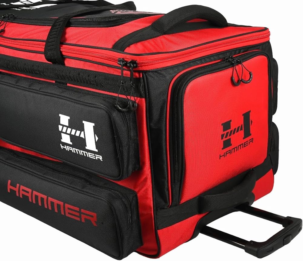 Hammer Black Edition Trolley Wheelie Cricket Kit Bag | 206L Extra-Large Capacity | Dual Bat Compartments | Luggage-Grade Wheels | Adult Cricket Gear Bag