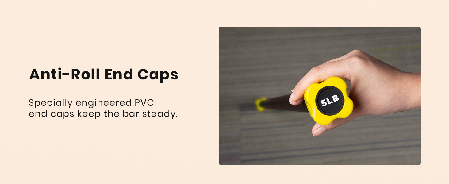 Comfortable Grip and Anti-Roll Design: The bar is comfortably foam padded and well balanced. PVC end cap serves as a buffer on the ends thus no damage will cause to your surroundings