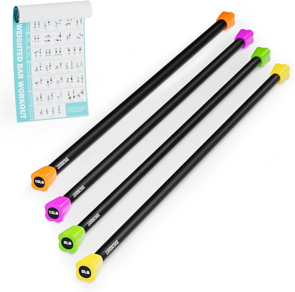 LIONSCOOL Workout Weighted Bar,Padded Exercise Weight Bar, Solid Steel Stretching weighted bar set for Body Sculpting, Physical Therapy,Body Toning