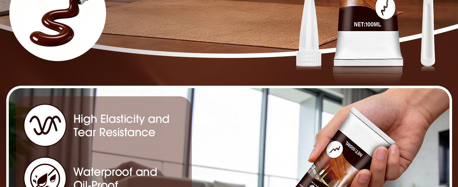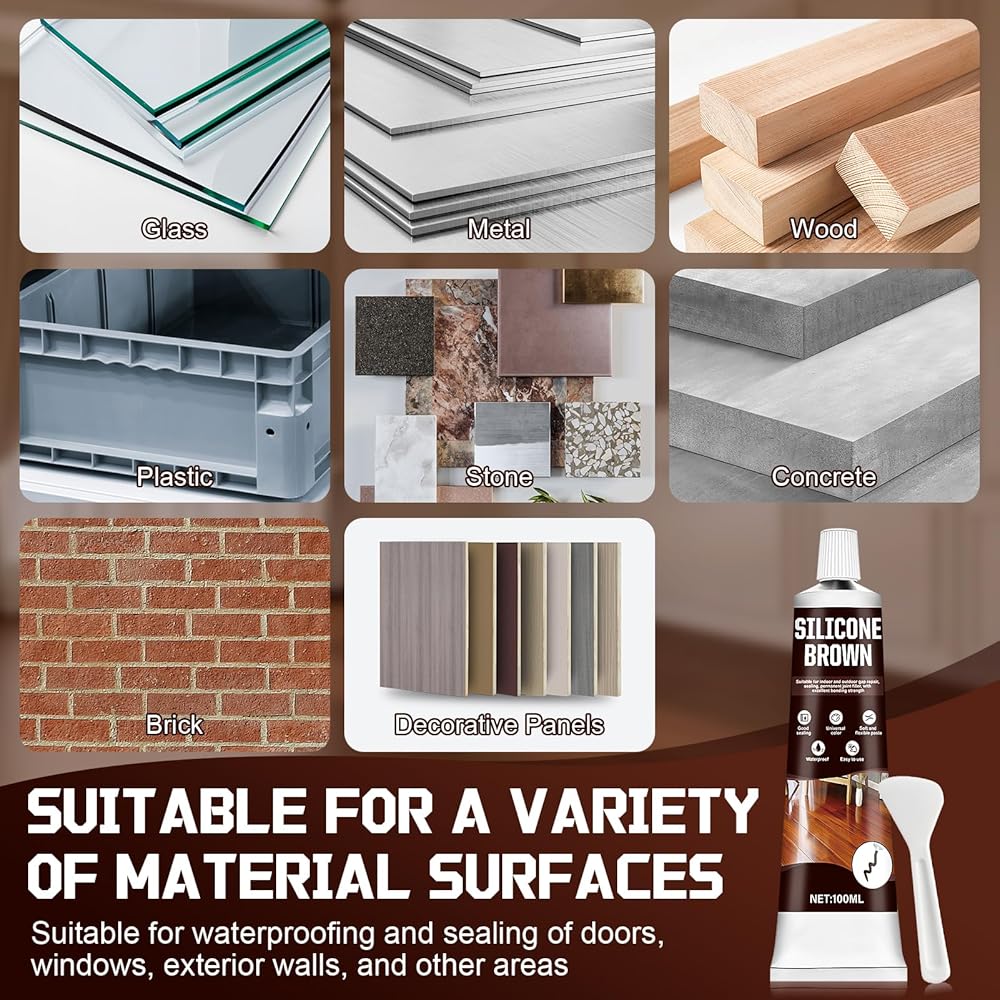Useful for Indoor and Outdoor Use: This brown caulk withstands sunlight, rain. Whether it's indoor kitchen and bathroom joints or outdoor doors, windows, and gutters.