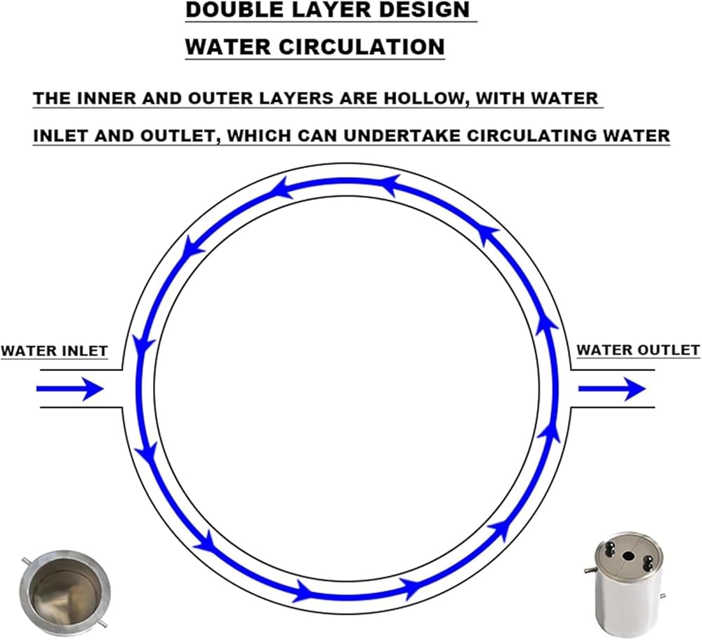 Double-layer stainless steel barrel- double-layer design, water circulation, hollow between the inner and outer layers, with water inlet and outlet, which can undertake circulating water.