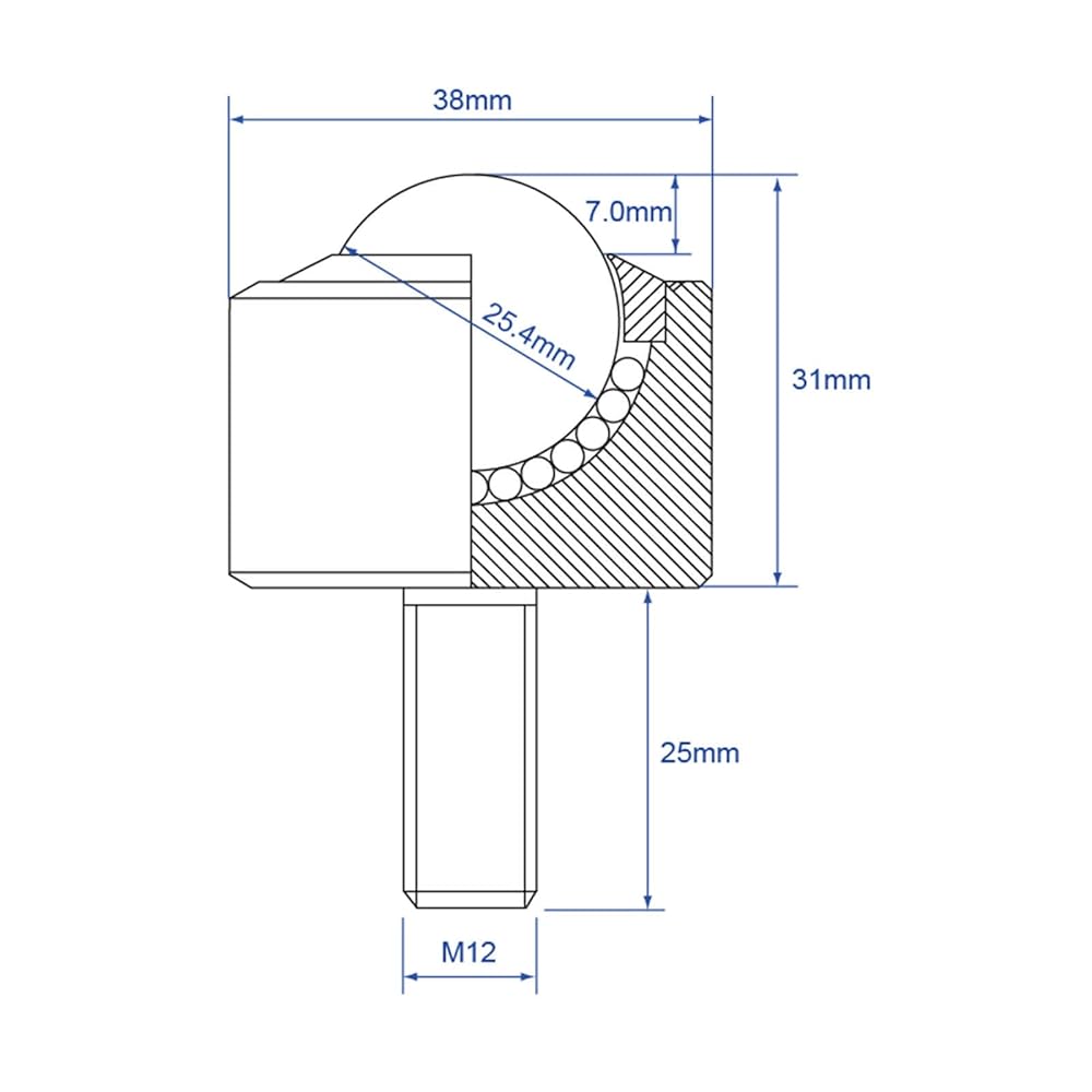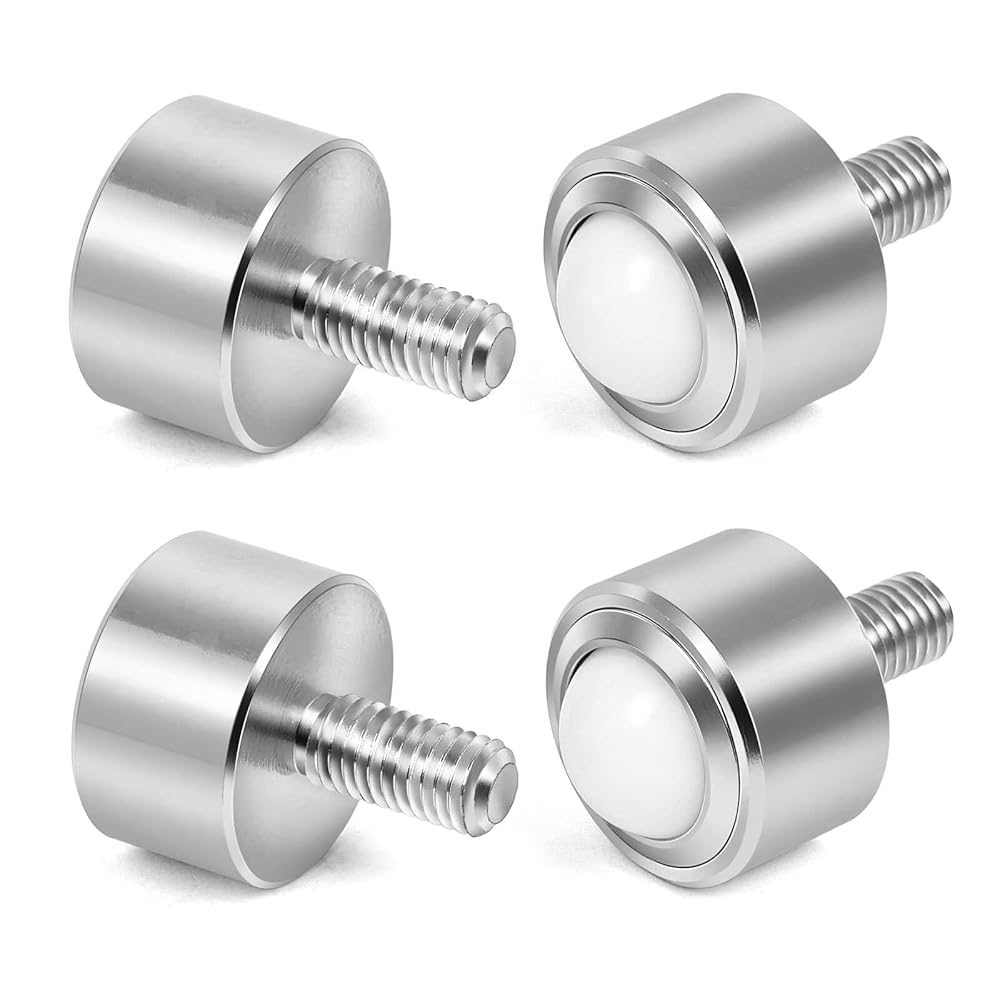 Ball Caster Roller Transfer Bearing - Ball Transfer Unit Appliance Caster Transmission 1 Inch M12,Stud Mounted,Thread Stem,Nylon & Carbon Steel,550 Lbs Total Load Capacity,Set of 4