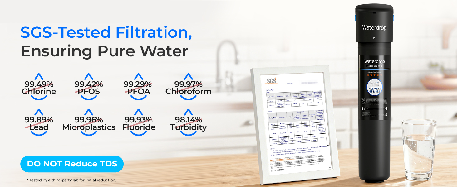 𝐈𝐧𝐧𝐨𝐯𝐚𝐭𝐢𝐯𝐞 𝐌𝐮𝐥𝐭𝐢𝐬𝐭𝐚𝐠𝐞 𝐅𝐢𝐥𝐭𝐫𝐚𝐭𝐢𝐨𝐧:The Waterdrop Direct Connect Under Sink Water Filtration System uses innovative multistage filtration. And it can effectively reduces PFAS, PFOA/PFOS, lead, chlorine, heavy metals, chemical iṁpurity, sediment and other large particles.[2] Enjoy healthy and pure water straight from your tap – no need to buy bottled water anymore!