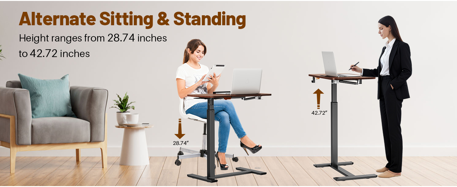 Multi-functional Use: This tilting side table features four hidden swivel casters and a 1.18-inch base for effortless mobility, sliding easily under sofas or beds. It serves not only as a portable work/study desk but also instantly transforms into a standing desk, laptop table, or sofa coffee table