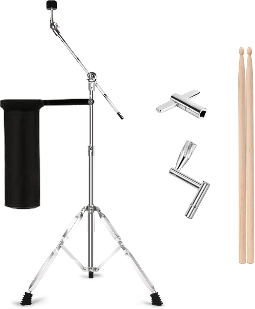 【All-in-One Cymbal Stand Combo】Everything You Need, Nothing to Buy Separately. This professional ready-to-play kit delivers complete value with a 2-in-1 straight/boom convertible cymbal stand, a pair of 5A drumsticks with drumsticks holder, plus both T-style and Z-style drum keys—perfectly bundled for practice, stage, and studio.