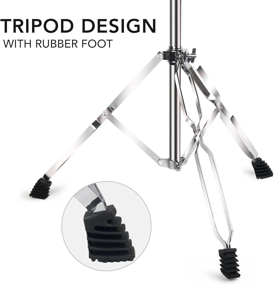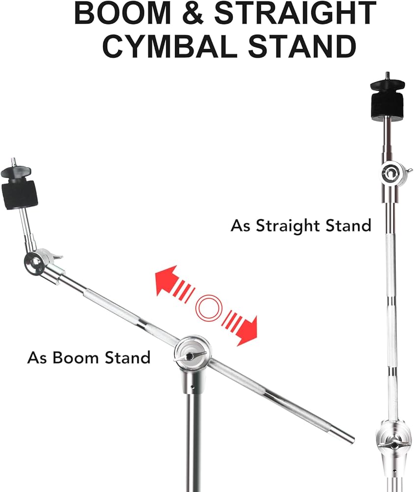 【Heavy-Duty Cymbal Stand】Our boom cymbal stand effortlessly converts between straight and boom configurations, highly recommended for 14" to 20" cymbals. Forged from premium ferrous alloy, they feature a bright, durable finish, thickened tubes, a double-braced base, and enlarged rubber feet — delivering exceptional hardness, stability, and unwavering support for years of rigorous play.