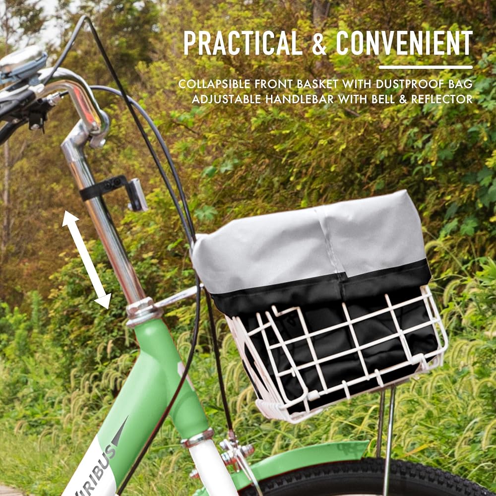 Dual Baskets: Front fold-down basket holds up to 44 lb for easy access; rear removable wheeled basket supports up to 110 lb; convenient for carrying groceries, supplies, or pets—making this a practical 3 wheel bike for adults