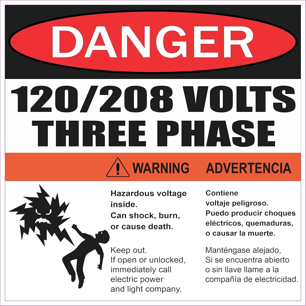 120/208 Volts Three Phase Vinyl Sticker Description: