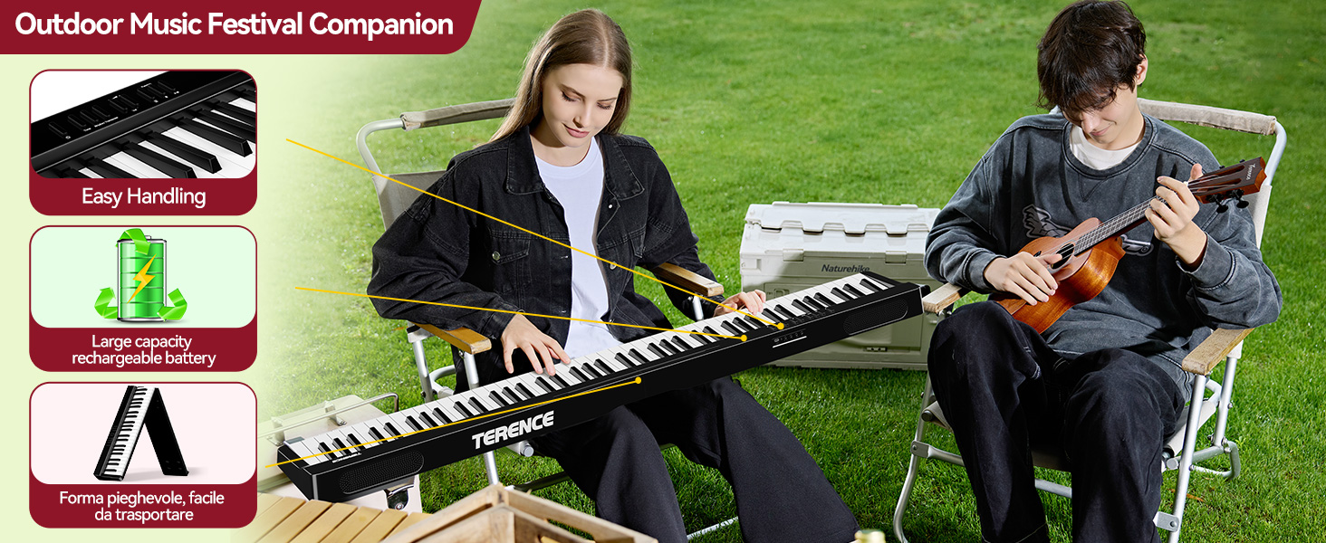 【Ultra-Portable Foldable Design】Whether you're traveling, performing, or practicing at home, this keyboard's innovative folding design makes it easy to carry and store. No more sacrificing playability for portability—take your music anywhere without compromising on quality!