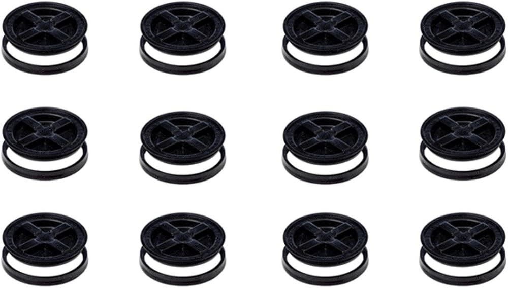 12 Pack Of Black Spin Top Gamma Seal Lids, The Gamma Seal Lid, Transforms Your Bucket Or Pail Into An Storage Container! Unlike Most Screw Off Covers, This Lid Is Made Of Hi-density Polyethylene And Creates A Leak-proof Seal & Is Made Of Food Grade Materials. Resealable And Reusable Lid Reseals
