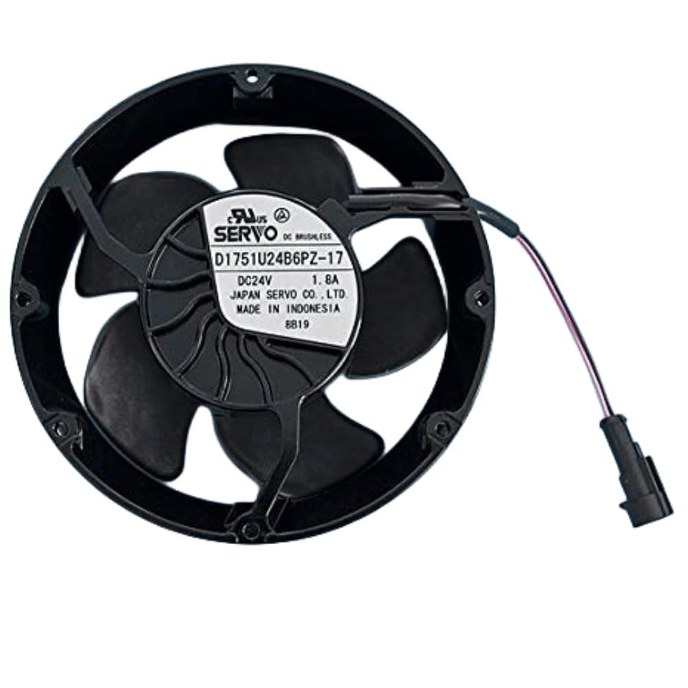 Model: D1751U24B6PZ-17 Size: 172*150*51MM (full round aluminum frame, plastic leaf, second line with end) Voltage: 24V Current: 1.8A Power: 43.2W Speed: 6950RPM Air volume: 16.5 (m3/min)*1 Wind pressure: 350Pa Noise: 95DBA