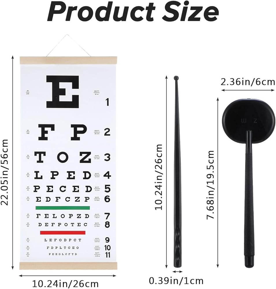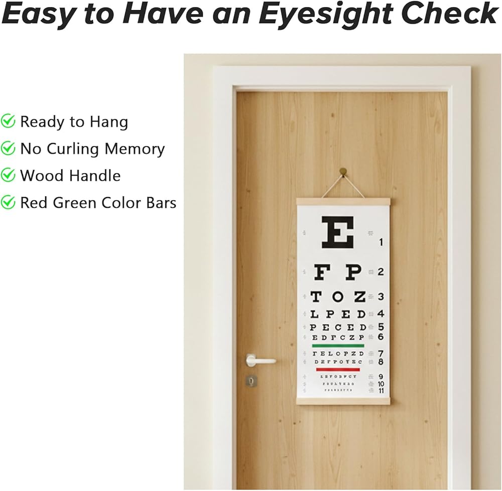 • Suitable Size: Measuring 22x11 inches, this eye chart allows for vision checks from a distance of up to 20 feet. It's suitable for hanging in your home or in places with limited space. This eye chart is a moderate size and won't take up too much space or hinder your use.