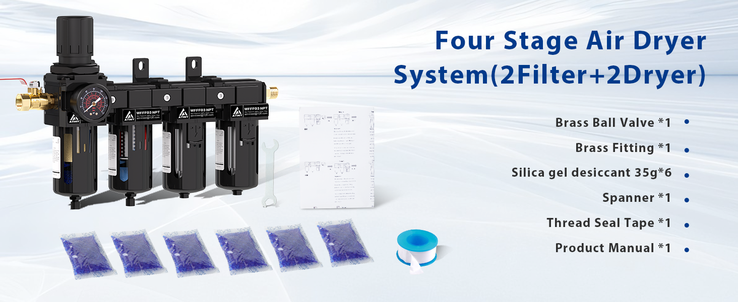 【Caution】4 Stage Air Drying System operated within a maximum pressure of 1.0MPA/150psi/10bar. Exceeding this limit may damage the air filter regulator.