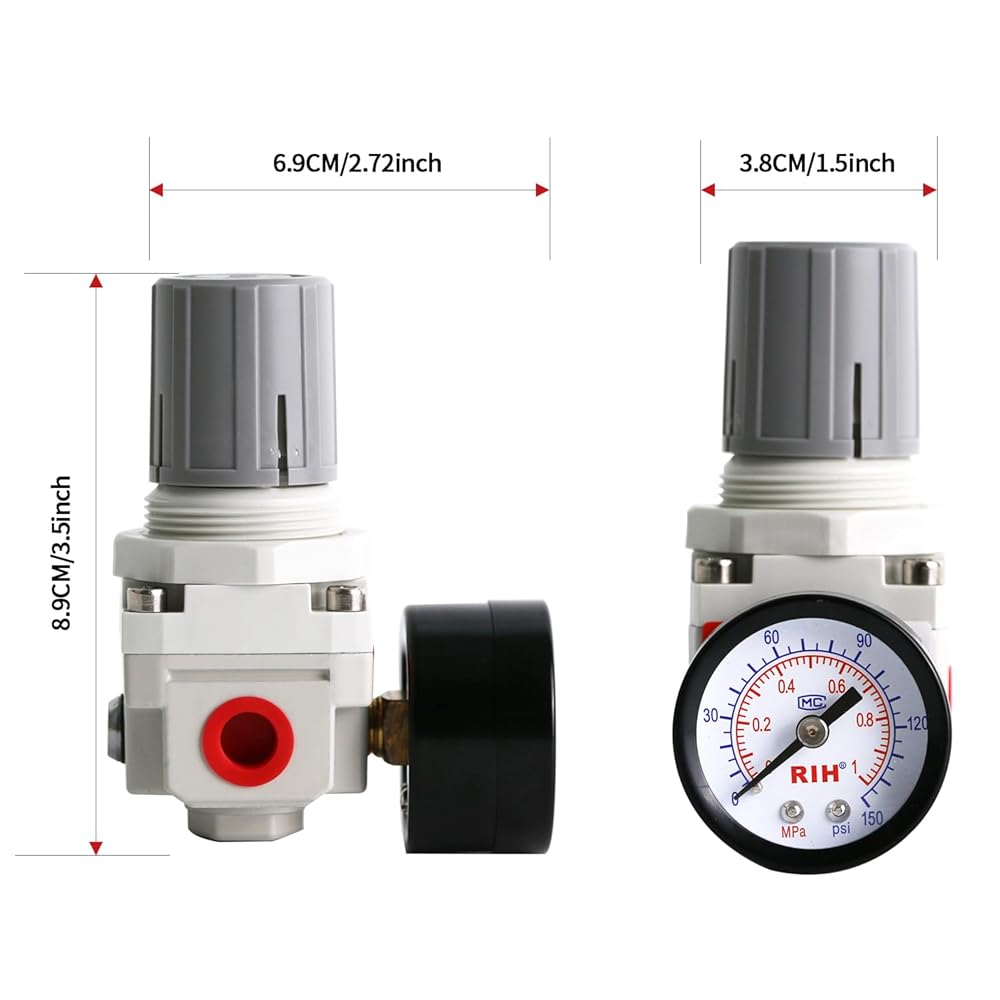 【Product Packaging】Regulator body,0-150 Gauge & Bracket,a pair of Air Coupler& Plug Kit, , 1 x Thread Seal Tape,2 x 1/4" NPT Fittings (easy installation)