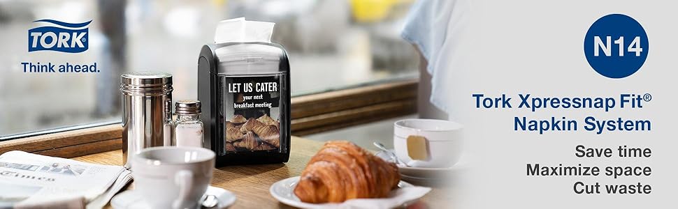 Tork Xpressnap Fit White Dispenser Napkin N14 Tork Xpressnap Fit dispenser napkins are perfect for serving guests at fast service restaurants and bars. One-at-a-time dispensing mean guests only take what they need, which means fewer refills and less napkin waste. These 1-ply folded napkins come in compact bundles to save space in your storage room. These napkins are ECOLOGO certified and made of 100% recycled fibers to decrease your environmental impact. Advantages at a glance: + Smaller napkin bundles to save storage space + ECOLOGO certified + EPA Compliant + FSC certified + Independent Verified and Certified Compostable by BPI + One-at-a-time dispensing napkin so guests only touch the napkin they take