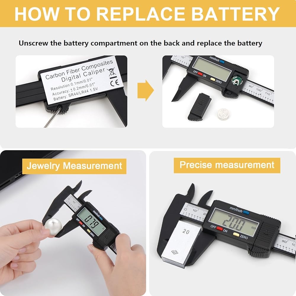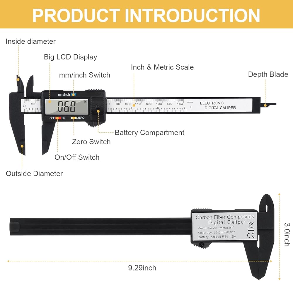 PRECISE MEASURMENT: Measurement range: 0 - 6"/ 0 - 150mm; Resolution: 0.01"/ 0.1mm; Accuracy: ±0.2mm/0.01". Perfect and accurate digital caliper measuring tool for household/DIY measurement, et. Please note it's not for technical grade extreme accuracy professional use