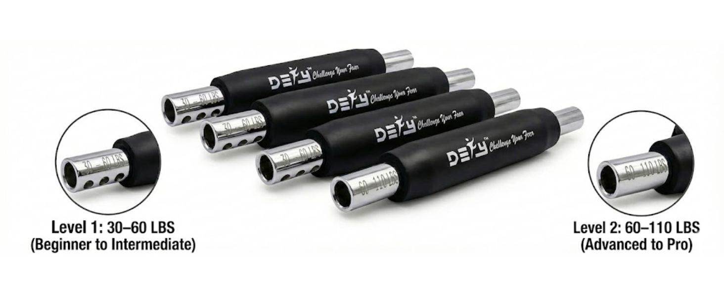 Adjustable Resistance (30-110 Lbs) for Every Fitness Level: Tailor your workout precisely with our 4-spring system, configured into two distinct resistance stages. The 30-60 lbs range is ideal for beginners and toning exercises, while the 60-110 lbs range challenges advanced athletes. This progressive design makes it the perfect piece of equipment to support your fitness journey.